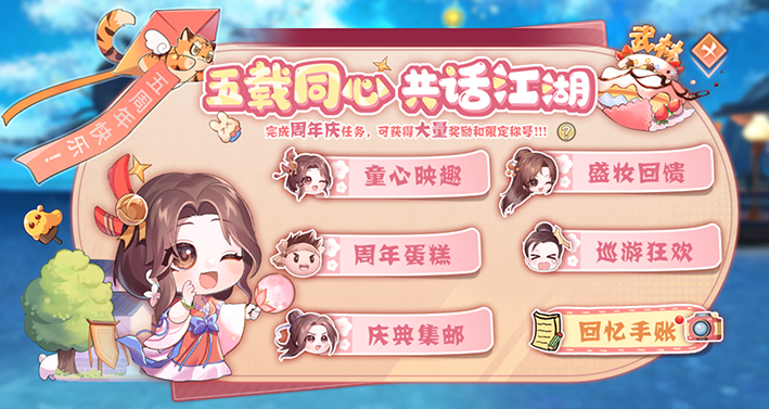 五湖四海同聚首,伍力全开,燃爆全场!武林江湖五周年庆典,邀你解锁典藏乐章,与老友叙旧赢好礼!