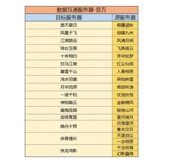 以上为4月23日数据互通全部安排,开服时间请留意官方公告。请广大客官相互转告,由此给您带来的不便,我们深表歉意。